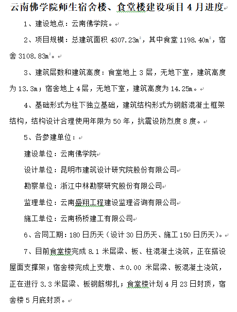云南佛學(xué)院師生宿舍樓、食堂樓建設(shè)項(xiàng)目4月進(jìn)度