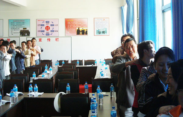 ??? 2009年4月10日,云南盛翔針對中層管理的“西點領(lǐng)導(dǎo)力模式培訓(xùn)”如期開課,來自監(jiān)理公司、測繪公司、物管公司、招標公司以及龍源森林溫泉公司的同事近80人齊聚一堂,共同學(xué)習(xí)。本期課程為期兩天半時間,整個課程除了“領(lǐng)導(dǎo)力”學(xué)習(xí)外,還開展了考驗團隊協(xié)作精神的拓展活動和一堂觸動人性深處的“心靈之旅”體驗。