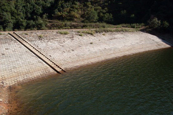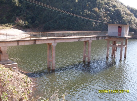 ??? 小箐口水庫(kù)位于安寧市縣街河上游,壩址距小箐口村1.4km。水庫(kù)原建成于1956年,壩址控制徑流面積23.9km2 ,興利庫(kù)容176.58萬(wàn)m3,死庫(kù)容2.42萬(wàn)m3,總庫(kù)容195萬(wàn)m3。水庫(kù)經(jīng)過(guò)多年運(yùn)行,于1995年進(jìn)行了壩體防滲處理,改建輸水低涵進(jìn)口豎井。現(xiàn)小箐口水庫(kù)樞紐主要由大壩、溢洪道和輸水涵洞組成。