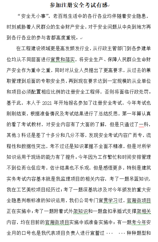 參加注冊安全考試有感
