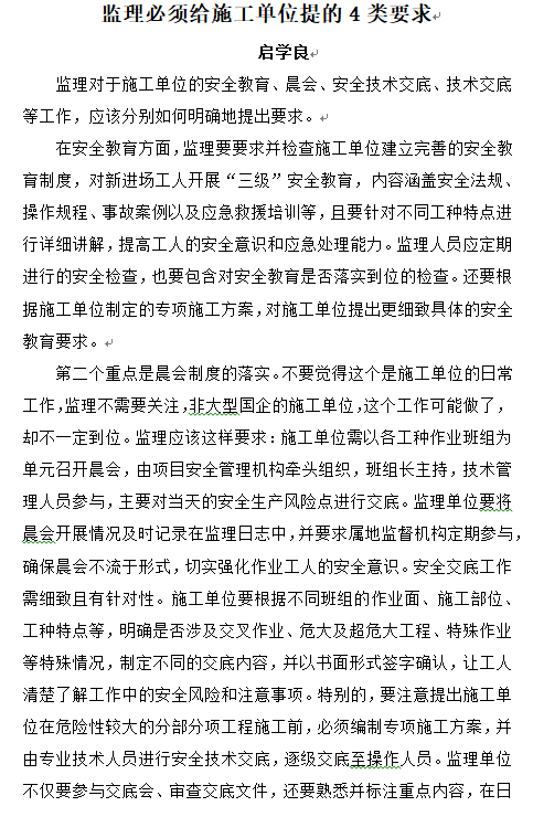 監(jiān)理必須給施工單位提的4類(lèi)要求——啟學(xué)良