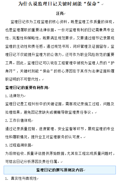 為什么說監(jiān)理日記關(guān)鍵時刻能“保命” 汪亮