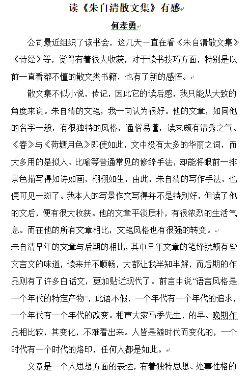 讀《朱自清散文集》有感 何孝勇