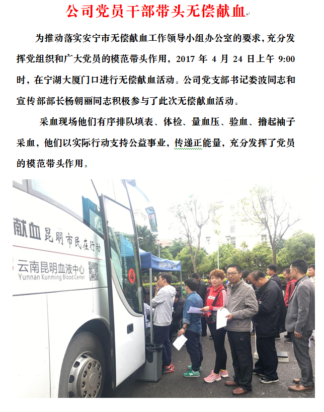 公司黨員干部帶頭無(wú)償獻(xiàn)血
