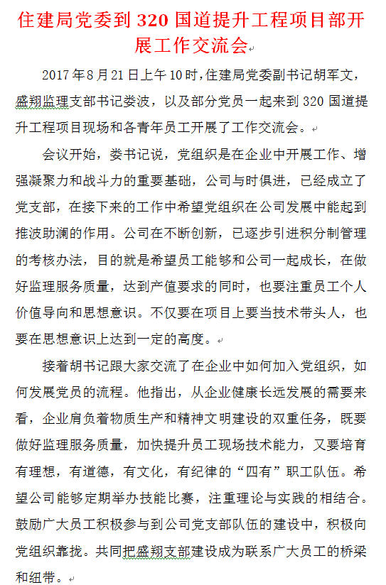 住建局黨委到320國(guó)道提升工程項(xiàng)目部開(kāi)展工作交流會(huì)