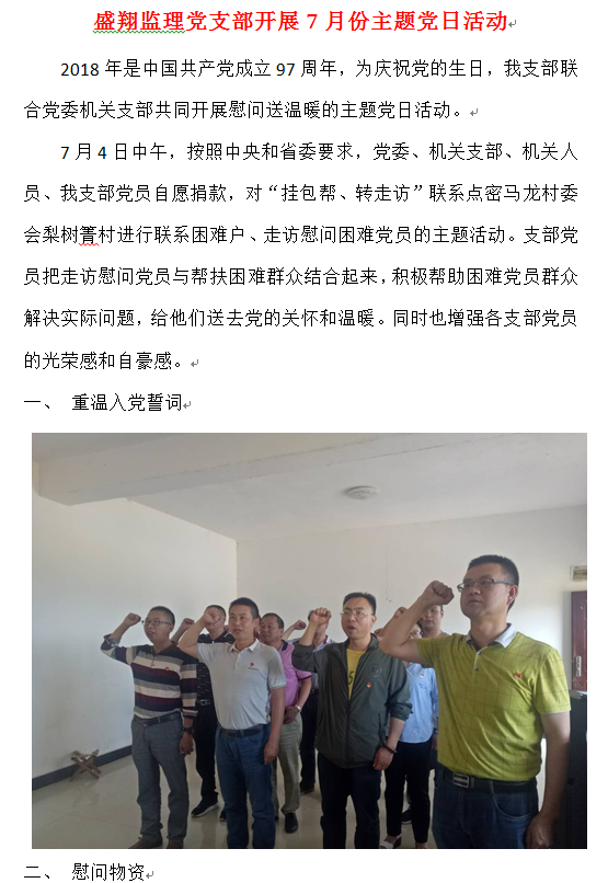 盛翔監(jiān)理黨支部6月份主題黨日活動